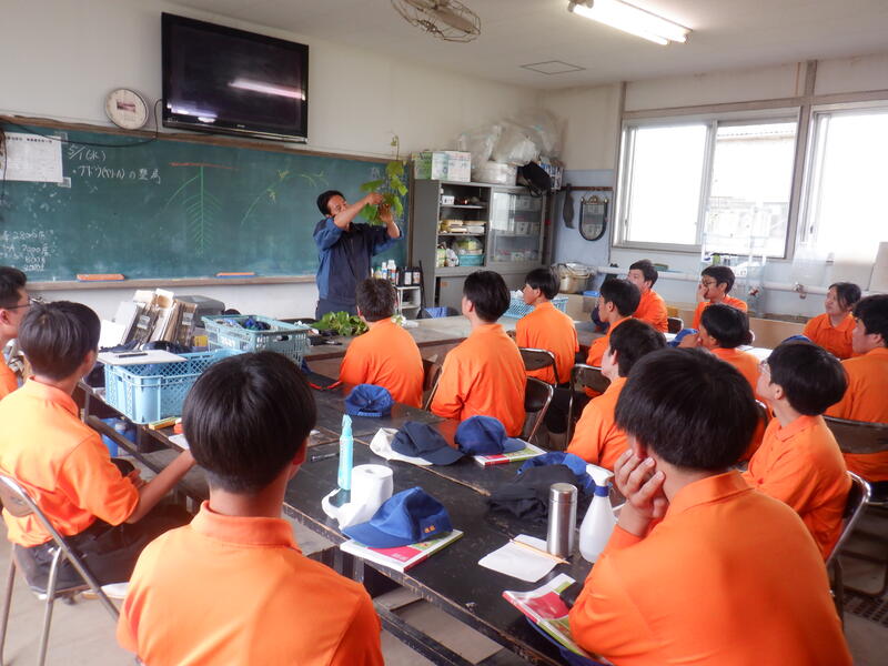 放課後の当番実習で園芸科の生徒が野菜・草花・果樹の管理をしています。