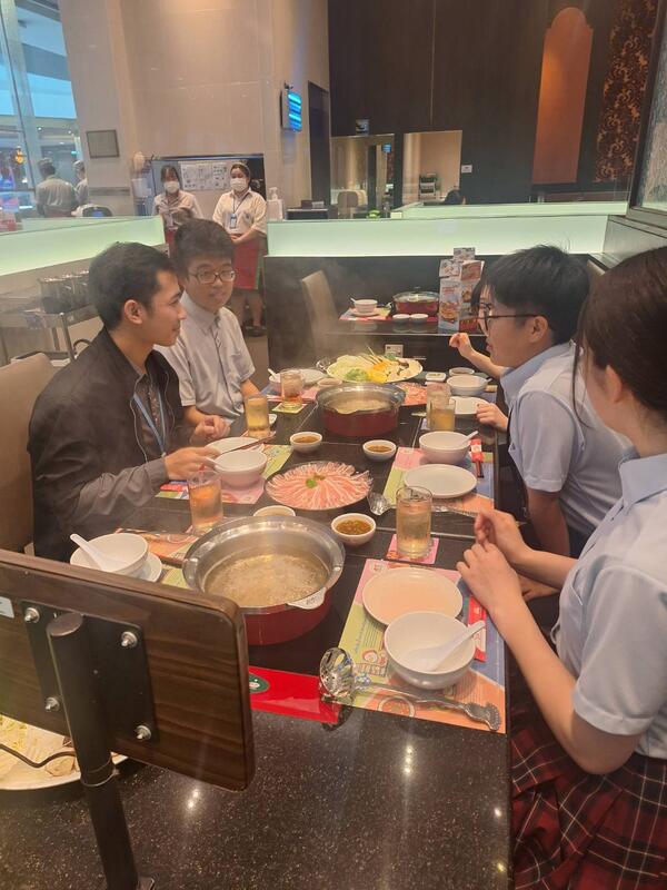 お昼はさくら学校の人たちとタイ式のmkをいただきました。その後、近くのモールで食生活調査をしました。日本の物価と比べて高い印象で、納豆は約400円もし、熊本産のイチゴも1パック約3千円、日本産の牛肉は1㎏約2万円と高額でした。タイでは日本の商品が人気でたくさん置いてあり、味が美味しいのもあって高くても売れるのだと1年生の田中さんが分析しました。