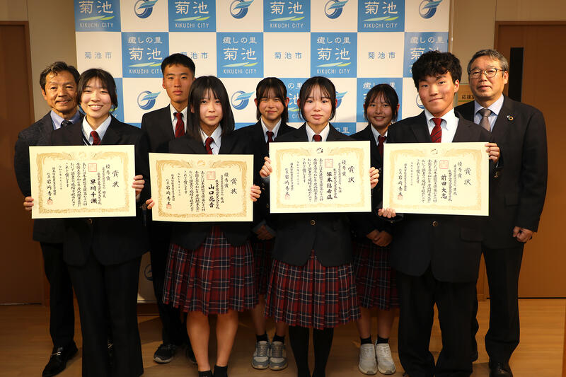 12月8日(月)に農業クラブ全国大会出場・弓道部の九州大会出場を終えての表敬訪問に、生徒7名で伺いました!