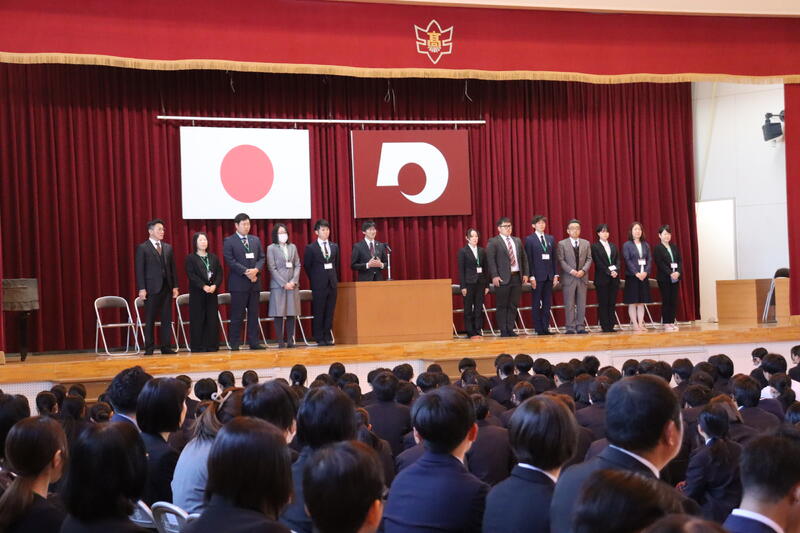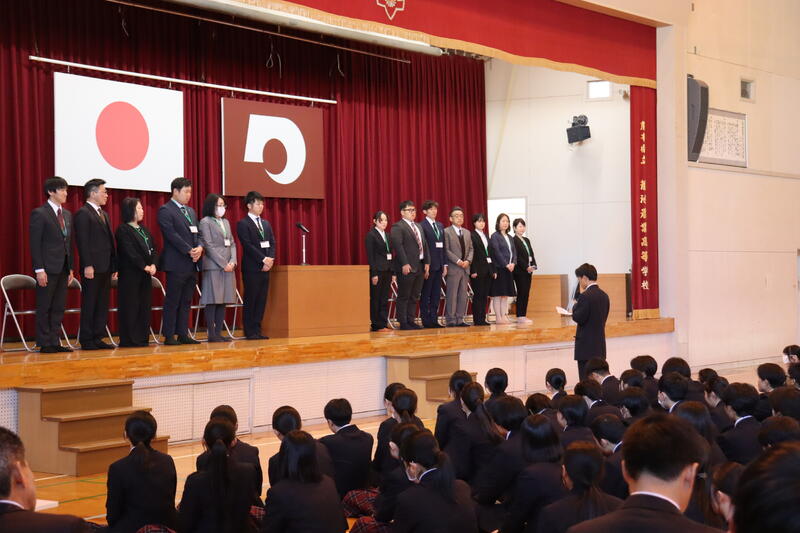 まず、新任式では、13名の先生方が登壇し、生徒たちから大きな歓迎を受けました。
