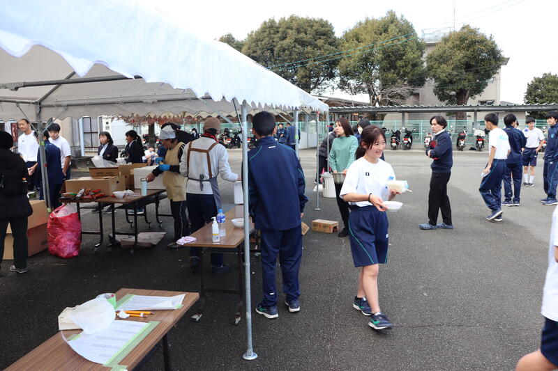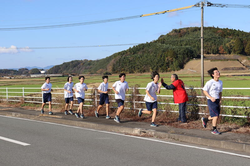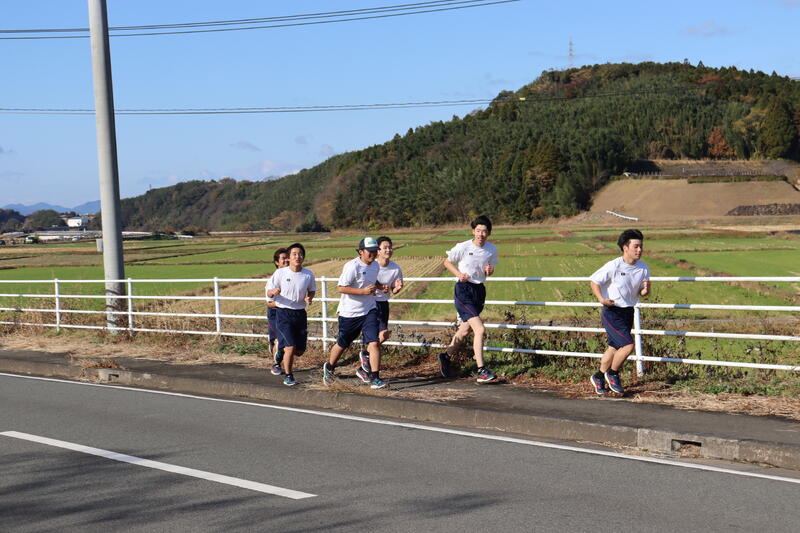 本日は令和7年度 校内ロードレース大会が予定通り実施されました。晴れた空の下、生徒たちは元気に駆け出し、それぞれのペースで頑張りました。男子は14キロ、女子は12キロという道のりでしたが、全員が元気に完走できました。その後、育友会の方々につくっていただいた豚汁、ご飯をおいしそうに食べていました。育友会のみなさんには前日から仕込みや、今朝も早くから準備していただいてとても感謝しています。