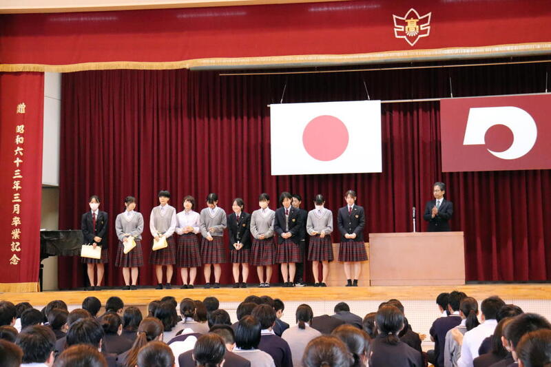 早朝から小雨が降り大会の実施が危ぶまれる天気でしたが、出発時刻を男子9:30、女子9:35と早めることと、男子も女子と同じ12㎞コースを使用することで、本年度のロードレース大会がなんとか開催されました。生徒たちは、これまでの練習の成果を発揮し、雨の中を元気に駆け抜けていきました。昼食には、育友会より豚汁とご飯が振舞われ、どんぶりいっぱいにつがれた温かい豚汁をありがたく頂きました。