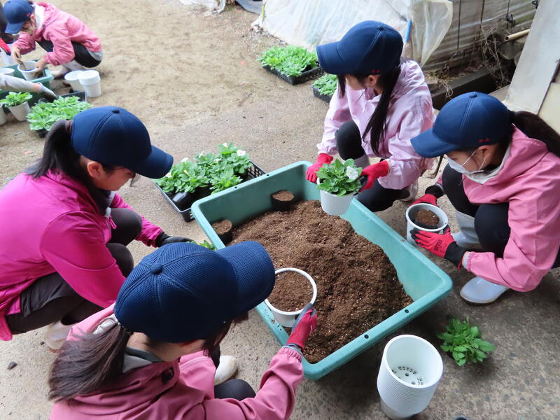 ペチュニアの管理(生活文化科) 投稿日時 : 02/27 投稿者1 1年生の授業で、ペチュニアの鉢替えを行いました! 鉢替えはカーネーションでも経験しており、全員スムーズに取組めていました 生徒同士で教え合う場面もあり、協力し合って実習に取り組む様子に1年間の成長を感じました