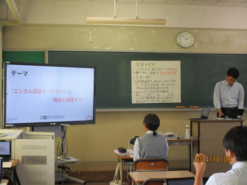 今年度、熊本県立大学に内地留学している本校の津田教諭が「エシカル消費教育第5回」として、「エシカル消費に関するホームプロジェクト・テーマ発表会」を実施しました。