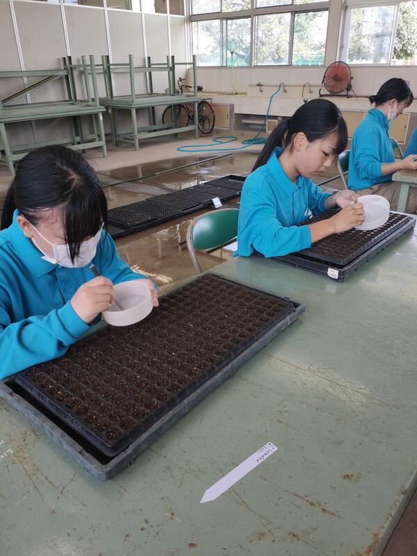 種まき後は、覆土をし潅水をして発芽を待ちます。