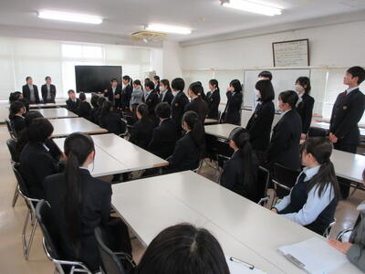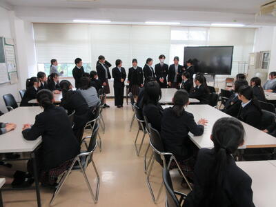 本日、4月13日(月)⑤⑥限に新入生を迎えて、生活文化科の学科対面式・結団式を行いました。緊張の1年生を前に、2・3年生が優しく会を先導。学科の特徴や各クラスの紹介をしてくれました。1年生が自己紹介をした後は、体育大会に向け結団式を実施。全学年で体育大会の学科リレー走順を決めました。一致団結して、優勝奪還狙います