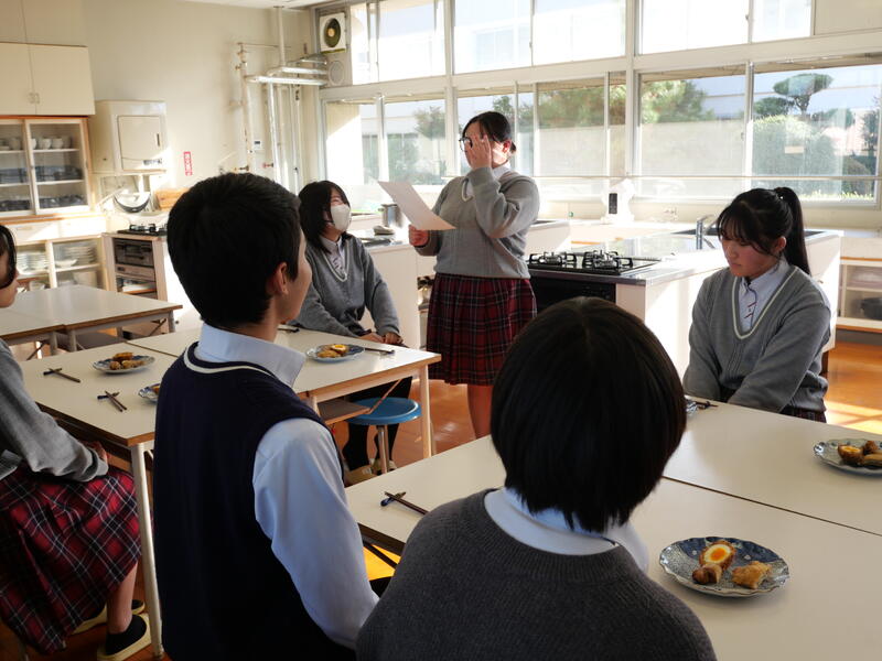 菊農豚肉を使った料理試食会(畜産科学科・中家畜×生活文化科・調理)