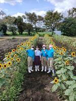 1年生が8月に播種をしたヒマワリが台風に耐え、きれいに咲きました。