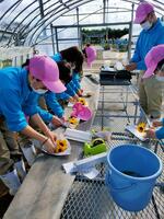 また、わき目から出た小さなヒマワリを収穫し1年生でラッピングをして持ち帰りをしました。