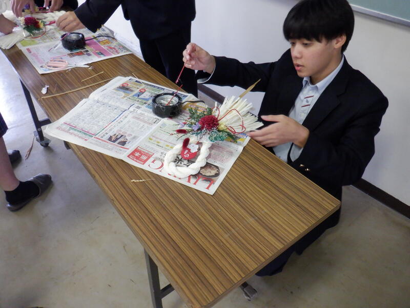 2年生のアレンジしめ縄制作(園芸科)