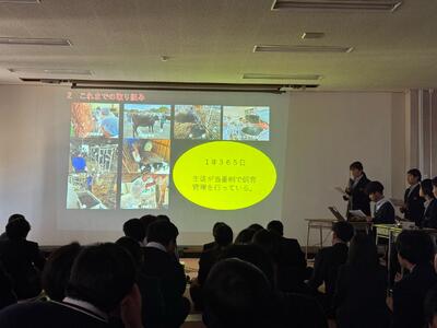 本日3、4限目農業クラブ役員運営のもと学科内4部門によるプロジェクト発表会が行われました各部門を代表して発表したみなさんお疲れ様でした。各部門の取り組みや日頃の頑張りがとても伝わるすばらしい発表会でした