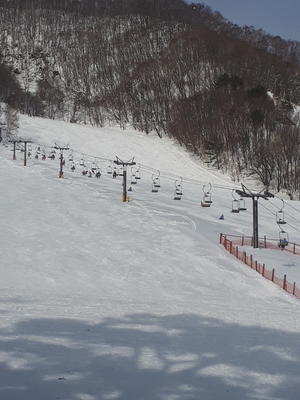 天気よし、雪よしのスキー研修です。昼食の牛丼を食べ、元気に出ていきました。すでにリフトに乗って格好よく滑れるようになってます。
