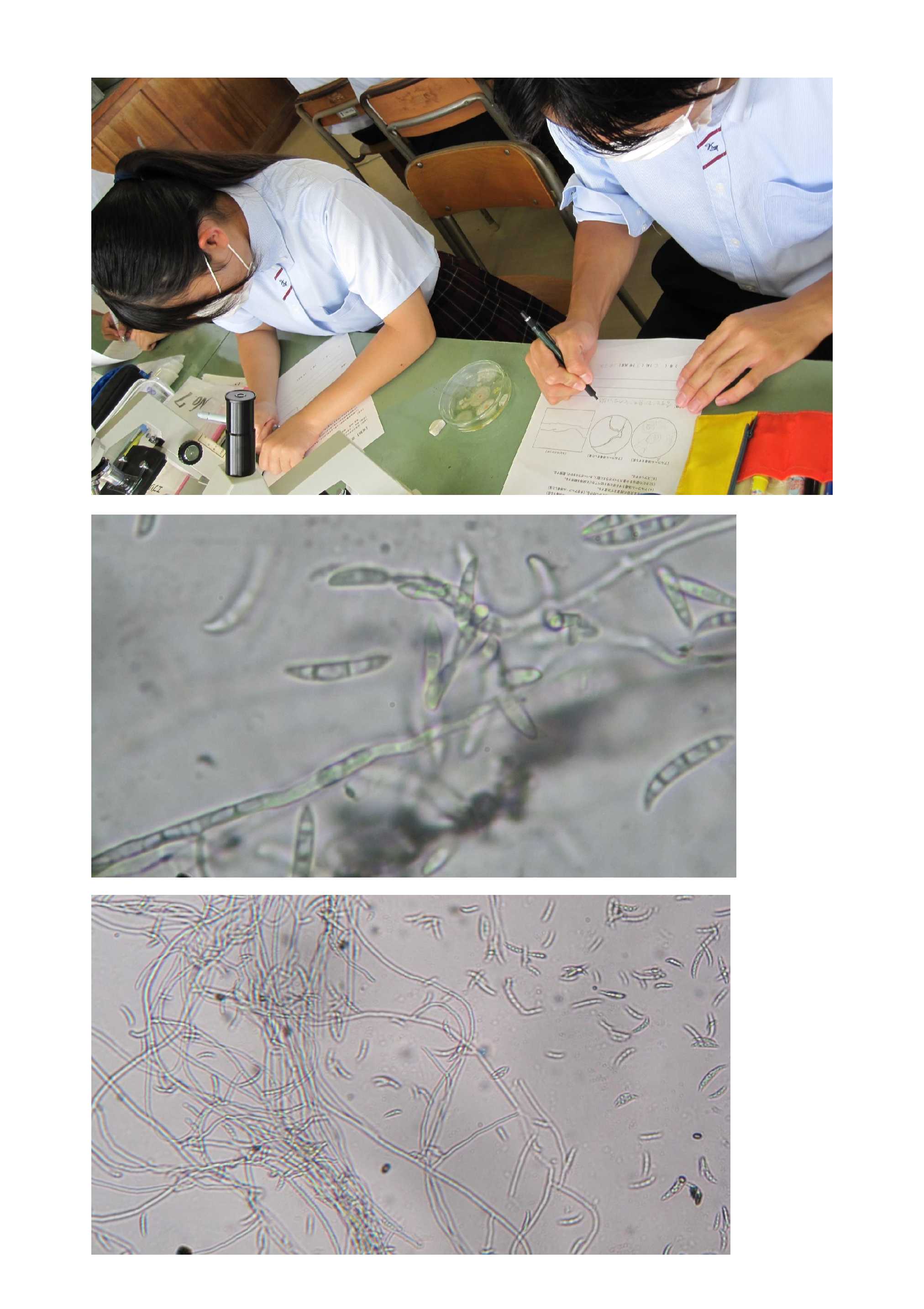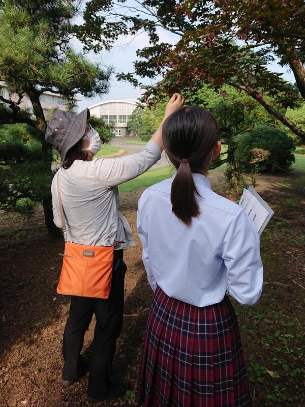 菊池農業高校には広い前庭や農場があります。そのため、樹木、昆虫、野鳥、植物、野生動物など多くの生き物を観察することができます。昨年と同様、今年も観察会を実施しました。「この葉のギザギザを鋸歯というんだよ」「これは複数の葉にみえるけど1枚の葉で複葉といいます」などの解説や「これは何という植物でしょうか」クイズ形式で復習しながら学習しました。理科の先生と農業の先生が観察会を案内します。生徒は記録を取りながら、観察しました。生き物の観察では多くの種類を見ることができ楽しいですよこの1時間だけでも、樹木:約30種、植物:約20種、昆虫野鳥爬虫類など:8種見ることができました