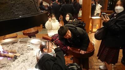 今日はスキー研修2日目。気温3℃、曇り空ではありましたが、生徒達皆は元気よくスキー研修に参加しました。午後のスキー研修では多くの班がリフトに乗り、上から滑ることができました。