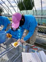 生徒たちはきれいに咲いたヒマワリに感動していました。