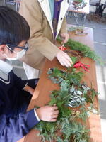 5・6限目の1年総合実習ではクリスマスリースの作成に挑戦しました。なかなか上手くいかず、講師の先生に助けていただきながら完成することができました。