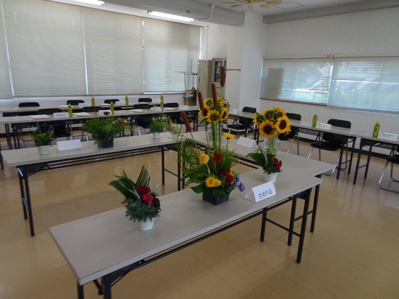 生徒が作成したフラワーアレンジメントを校内に展示しています。お客様がいらっしゃる会議では、フラワーアレンジメントの装飾を多くの方に見ていただいて、菊農の取組を知っていただくとともに、癒しと活力にしていただけたら幸いです。