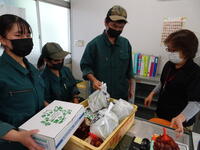 果樹園では柿がたくさん実っています。時々、学校内に販売実習に行きます。重たい柿のコンテナを持ってあちらこちらの職員室をまわっていきます。本館の先生方にたくさん購入していただきました。ありがとうございます。