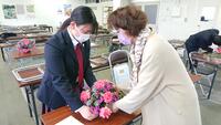 2年園芸科の草花専攻生がコサージュとリボン製作を隈本先生から教えて頂きました。フラワーアレンジメントにはいろんな種類がありますが、小さいのにとっても細やかで難しいのがコサージュです。リボンは表を出すために何度もねじるところや親指と人差し指を離さないように持っておくところが難しいです。生徒はリボンを作りながら「手がつりそうです、難しいです、また手が外れました」など何度もやり直していましたが、決して諦めません。左右の長さや輪のバランスを考えながらできました。コサージュのテーピングは慣れるまで練習が必要ですが、時間をかけて丁寧に行っていました。来年度の国家資格フラワー装飾3級が受けられるようになるまで頑張りましょう。生徒たちはできたコサージュを身につけて「このまま卒業式に行けそう!」と話していました。まだ2年生ですよ!あと1年後ね!