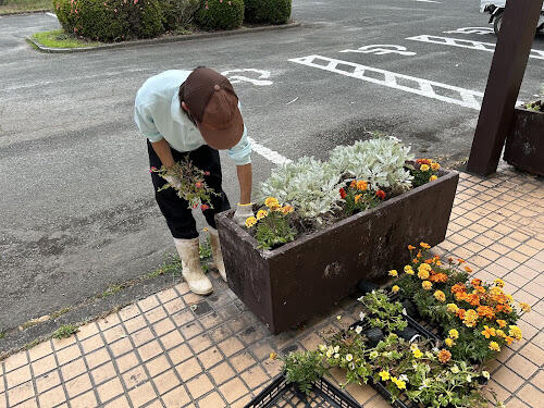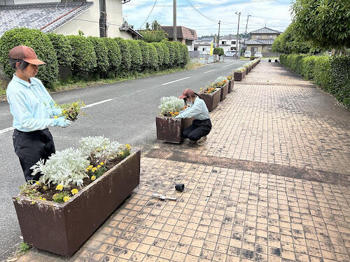 草花専攻生が菊池市文化会館の花壇装飾に行きました!