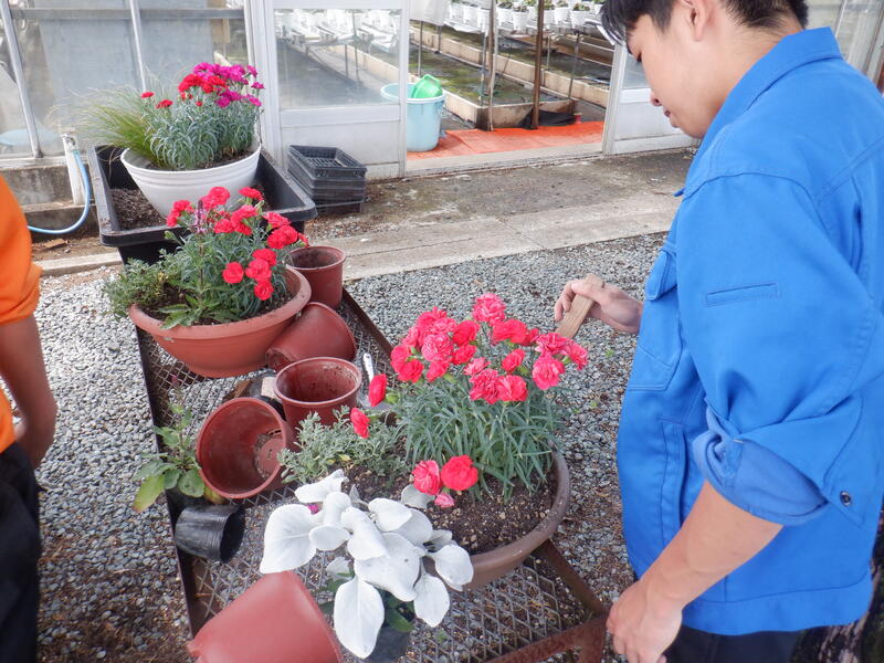 鉢替えの方法と意味をしっかりと理解して実習に取り組みました。