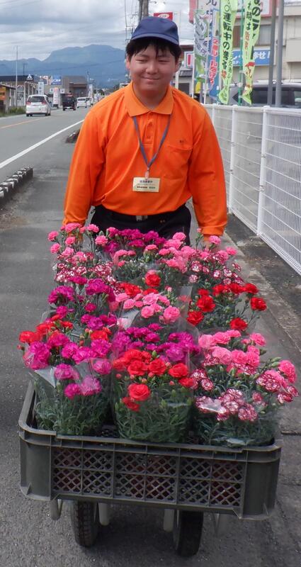 園芸科では野菜や果物、草花の販売で近隣をまわることがあります。この日もカーネーションを販売に行きました。お花好きなお客様も「母の日でもらったばかりでね」「母の日にあげたばかりでね」という時期で販売も難しいかなと思っていましたが、数多く買っていただきました。ありがとうございましたキラキラ園芸科ではまだこんなにきれいで、好評販売中ですので、ぜひお越しください。