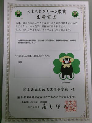 くまもとグリーン農業(D:有作くん E:有作くん100)生産宣言書が届きました(農業科)