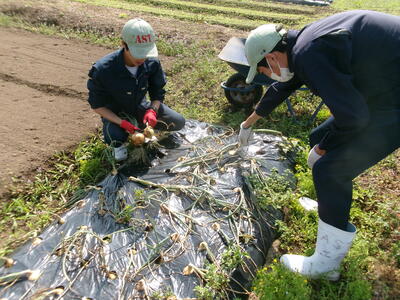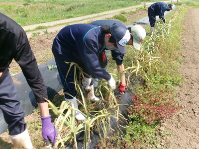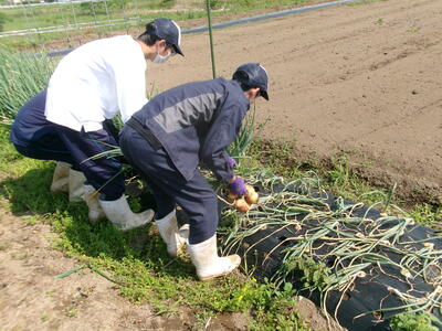 3年課題研究『有機農業』班 『タマネギ・ニンニク』を収穫(農業科)