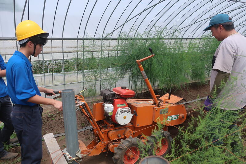 農業科地域資源活用専攻では農家の木下さんとJAさんご指導のもと本校アスパラガスハウスで実習を行いました。トリンチャーという機械で深さ約60cmの溝をきっていきました。生徒も最初は大きな機械で戸惑いもありましたが、すぐに慣れ立派な溝をきることができました。大変お世話になりました。