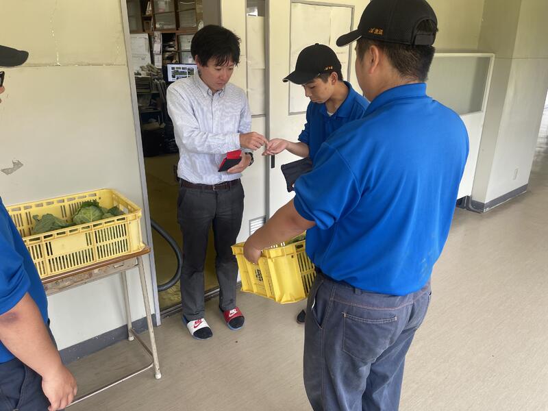 感謝の気持ちを込めて、日頃よりお世話になっている先生方に取れたてのトマト、キャベツの販売を行いました。