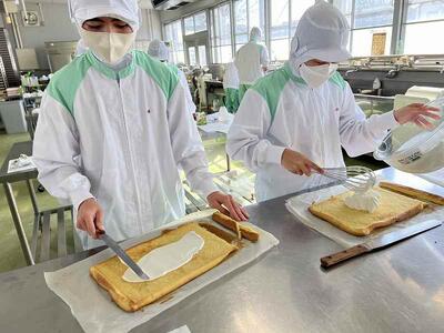 2学期の最後にも、ロールケーキの製造をしましたが、その際は中にイチゴジャムを巻いたので、