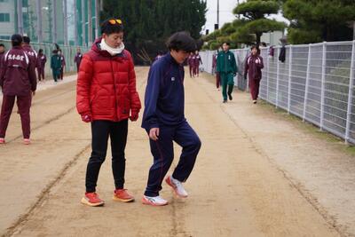 12月26日(火) 本校体育科の鈴木教諭のご縁で熊本商業高校陸上競技部の練習にお邪魔させていただきました!