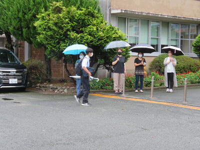 あいにくの雨でしたが、7時半に集合しチャイムがなる8時20分まで、登校して
