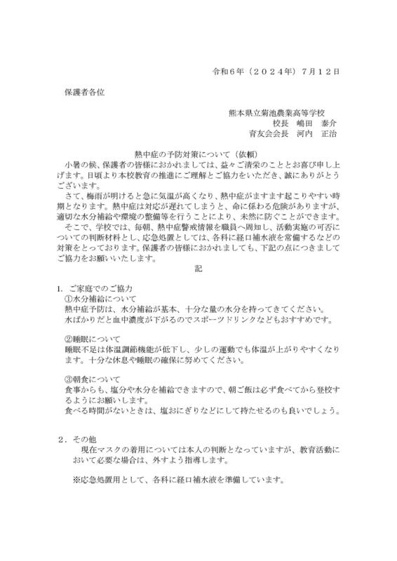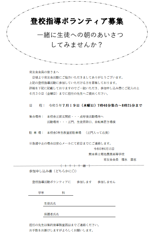 いつも菊池農業高等学校育友会へのご理解ご協力誠にありがとうございます。