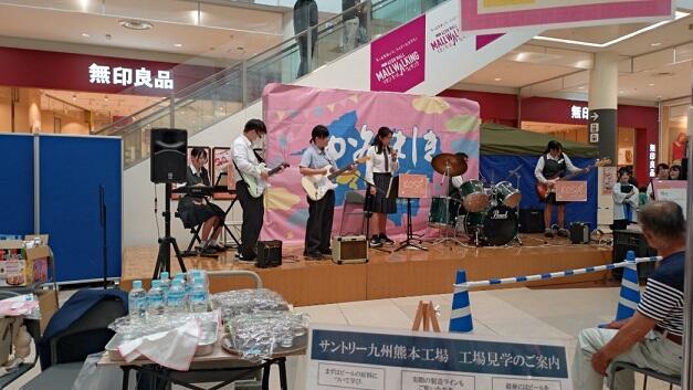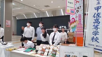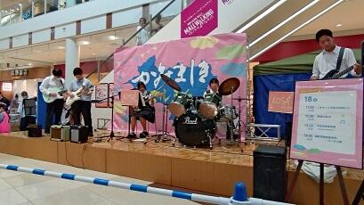 10月18日(土)・19日(日)、イオンモール熊本で開催された「かみましきマルシェ」に参加しました。音楽部は18日(土)大勢の観客が見守るメインステージで日頃の練習の成果を込めた演奏を披露しました。また、甲佐高校ブースでは甲佐町豪雨災害復興支援のため、木村のあられとコラボ