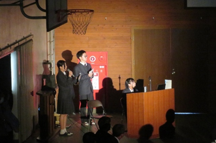 ステージ発表では、代議員会や保健委員会によるプレゼン、2年生のインターンシップについての報告などがありました。それぞれが発表スライドに様々な工夫を凝らしていました。