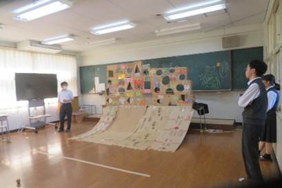 生徒が制作したポスターです!複数のパターンがあり、約1分ほど流していただきました。