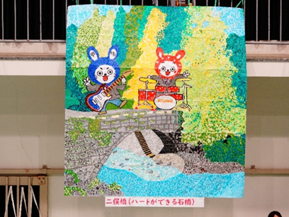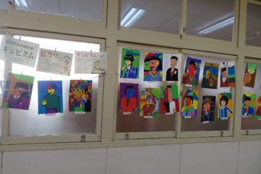 美術部や美術選択者による作品や、松橋西支援学校分教室さんの生徒による貼り絵、図書委員によるおすすめの本など、校内各所に授業成果を展示しました。