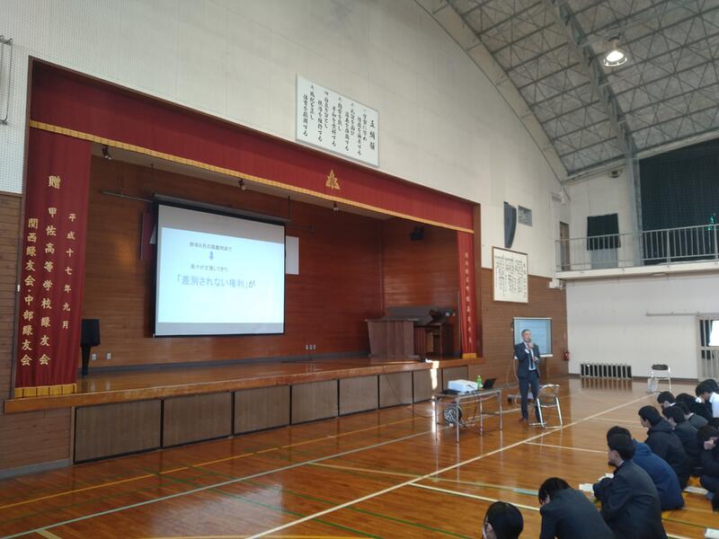 11月28日(金)に、部落解放同盟熊本県連合会書記長の秦竜也さんを講師としてお招きし、「部落差別の現実と今後の課題~人権教育・啓発に期待すること~」と題して、講演会を実施しました。本校生徒は、事前に部落問題を学んだうえで講演会に臨み、事後の学習へと繋げました。今回の講演会を通して、生徒たちは差別の実態を知り、今後、差別をなくすためにどうすべきかを改めて考える良い機会となりました。