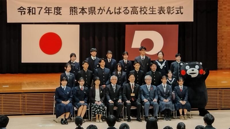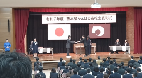 11月28日(金)令和7年度熊本県がんばる高校生表彰式が開催され、本校生徒が参加し、木村知事から表彰状を受け取りました。