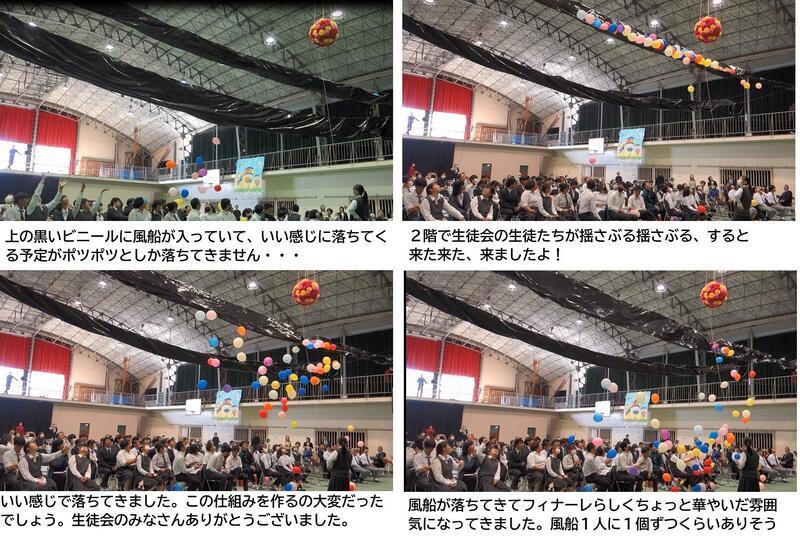 この仕掛けも大変だったと思いますが、本番もなかなか苦労して・・・でも最後は見事に風船・くす玉で最高のフィナーレとなりました。
