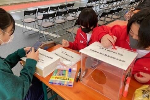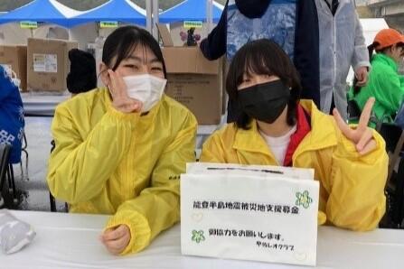 3月17日(日)緑川スポーツフェスタの会場で、甲佐高レオクラブ6人が募金活動を行いました。あいにくの雨で、レオメンバーもぬれながら協力を呼びかけました。午前中約1時間の活動で、来場されている方からの募金は12,827円が集まりました。活動後に金額を数えながら、雨で冷えていたからだも温かい気持ちになりました。これから能登の地域に送ります。ご協力いただいた皆さん、ありがとうございました。