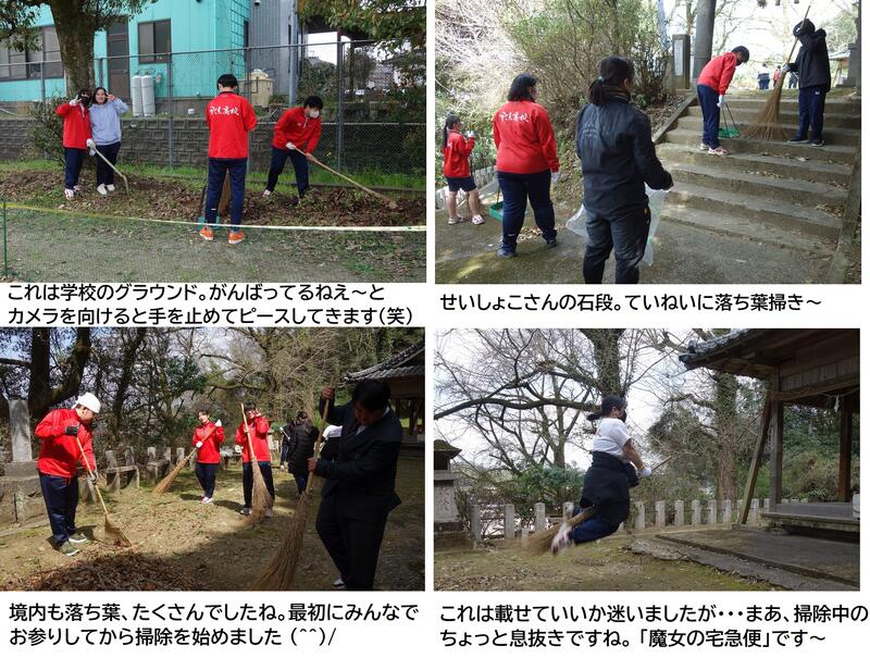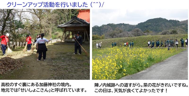 私(これを書いている自分)が約10年前甲佐高校への転勤が決まり高校のHPを見たらまずこの「クリーンアップ活動」が目に入ったことを思い出しました。おなじように記事を書いてあったんだなあと思いますが、なので少なくとも10年以上続いている活動です。長期休業つまり「春休み」とかに入る前に行っています。