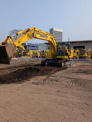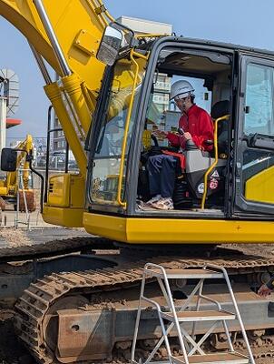 ICT建機(マシンコントロール油圧ショベル)への試乗の様子