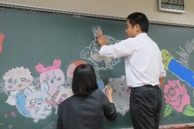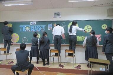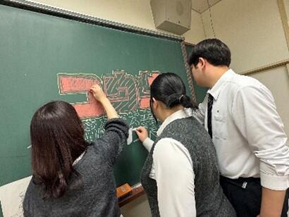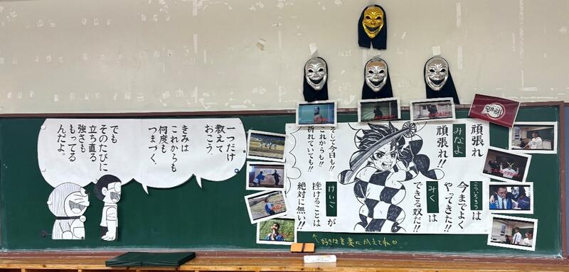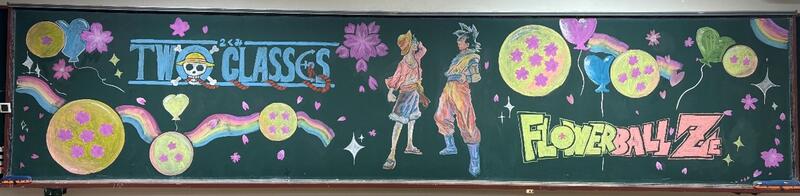 黒板アートと教室周辺の装飾、フォトコーナーも仕上げました。
