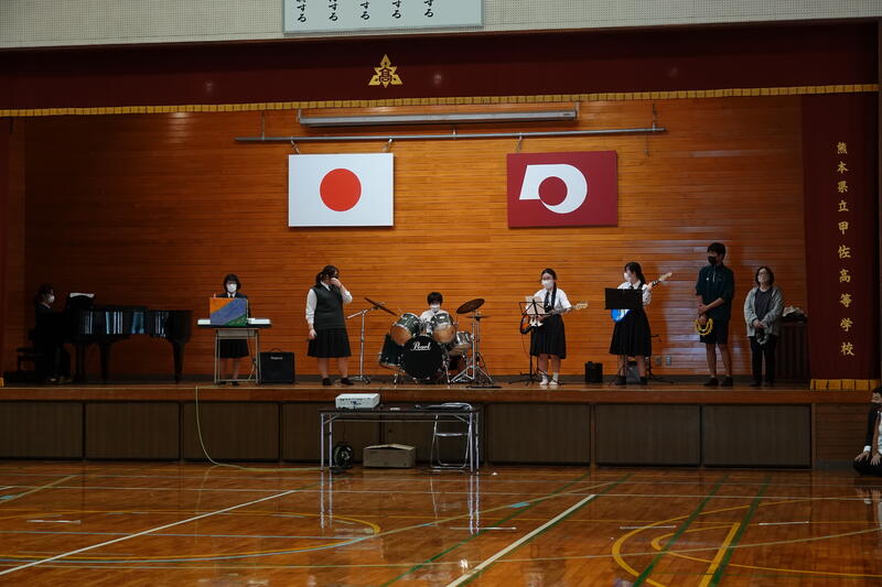 「私たちは、甲佐高校の一員であることの自覚と誇りを持ち、これから3年間どのような困難にも負けることなく、一日一日を大切にし、自分を向上させるために頑張ります。」