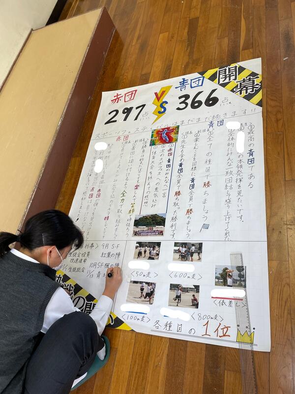 生徒会執行部の生徒が、体育大会に向けて旗作りをしました。