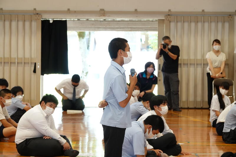 8月1日に甲佐町子ども議会が行われ、新旧生徒会メンバーが甲佐中学校の生徒さんと一緒に参加しました。