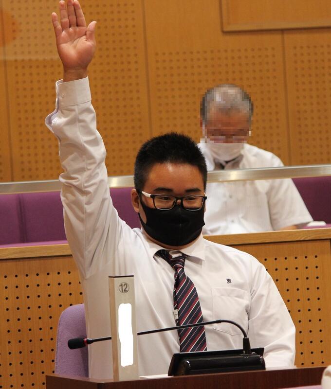 一般質問では、「議長!」と言い、まっすぐ挙手をします。