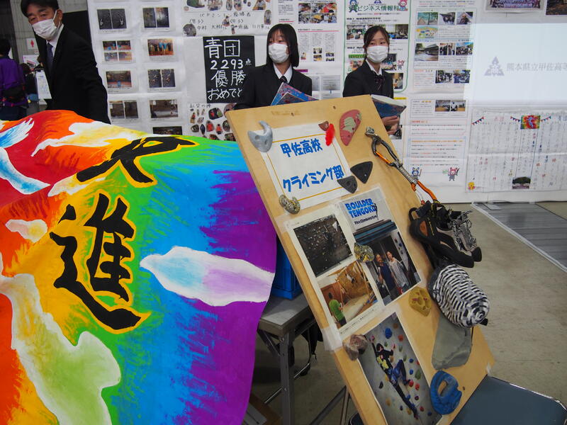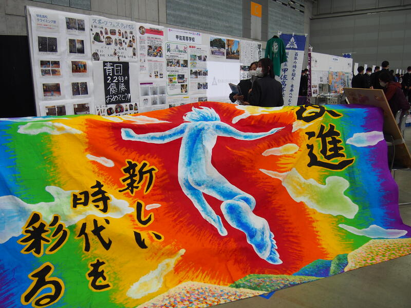 【生徒たちでつくった旗をメインに、取り組みの様子を展示】